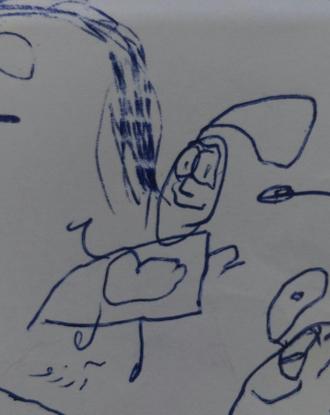 نقاشی یادگاری سفر امسال رو فاطمهزهرا کشید. اولین باری بود که دیدم کسی قلب رو هم تو بدن آدمای نقاشیش میکشه! :) در حیرت بودم از این همه خلاقیت تو بچهها. کلی آدم کشید و هرکدوم یه شکلی بودن، حالا من شش سال پیش یه مدل آدم کارتونی یاد گرفتم و توی این شش سال هرکس گفت آدم بکش همون رو کشیدم :|